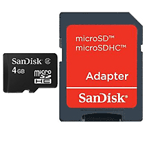 Sandisk microSDHC 4GB. Flash Card Typ: MicroSDHC. Produktfarbe: Schwarz. Speicheradapter enthalten: SD