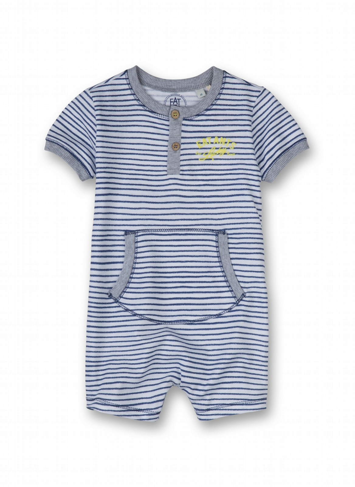 Mit diesem süßen Spieler steht lustigen Spiele-Nachmittagen nichts mehr im Weg. Das fröhliche Ringel-Design sorgt für gute Laune und die Qualität aus 100% Baumwolle für ein optimales Wohlbefinden. Die verwendete graue 2:2 Rippe an den Armen, dem Halsausschnitt und der aufgesetzten Känguru-Tasche verpasst dem Overall seinen besonderen Charme. Ein kleiner gelber Logo-Motivdruck auf der Brust rundet den Look ab. Eine praktische Knopfleiste am Halsausschnitt erleichtert das An- und Ausziehen.