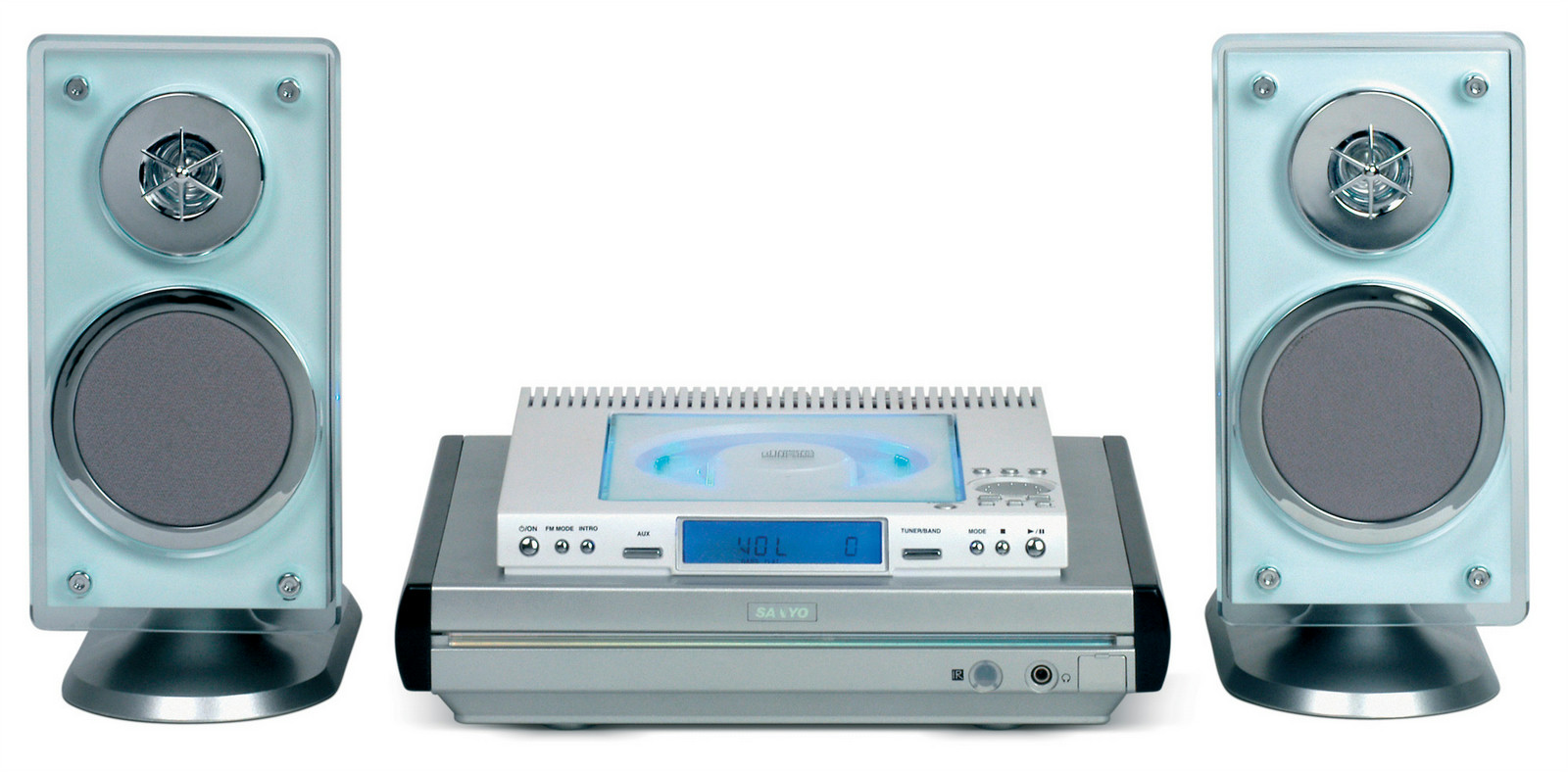 Sanyo Designer Micro Hi-Fi 10 Watts DC-MCR50. Anzahl der Cassettendecks: 1 deck(s), Zahl der Disks: 1 Disks. Musik Energie: 20 W. Tunertyp: Digital, Digitales UKW-Radio: 87,5 - 108 MHz. Display-Typ: LCD. Lautsprecher: Removable, 2 Way, Audio-System: Stereo