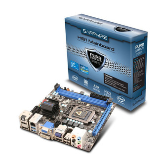 Sapphire PURE PLATINUM H61 (IPC-CI7S10H61). Unterstützte Arbeitsspeicher: DDR3-SDRAM, Arbeitsspeicher Typ: DIMM, Unterstützte Arbeitsspeichergeschwindigkeit: 1066,1333 MHz. Prozessorfamilie: Intel, Kompatible Prozessoren: Core i3,Core i5,Core i7, Prozessorsockel: LGA 1155 (Socket H2). Unterstützte Speicherlaufwerk-Schnittstellen: Serial ATA II. Netzwerkfunktionen: Gigabit Ethernet, LAN-Controller: Marvell 88E8059, Ethernet Schnittstellen Typ: Gigabit Ethernet. Komponente für: PC, Motherboard Chipsatz Familie: Intel, Motherboard Chipsatz: Intel H61