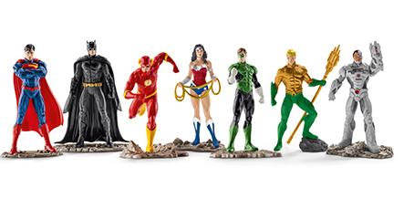 Schleich 22528, Justice League. Mindestalter: 3 Jahr(e), Empfohlenes Geschlecht: Junge, Produktfarbe: Mehrfarben. Menge pro Packung: 7 Stück(e)