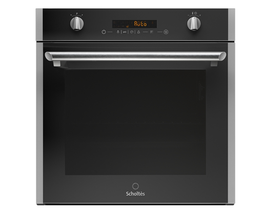 Scholtes SCHO 897ES P (BK). Ofengröße: Medium, Ofentyp: Electric oven, Gesamtes Fassungsvermögen Garraum Ofen: 62 l. Produktfarbe: Schwarz, Kontrolltyp: Rotation, Berührung, Kontrollposition: Vorne oben. Breite: 600 mm, Tiefe: 570 mm, Höhe: 600 mm