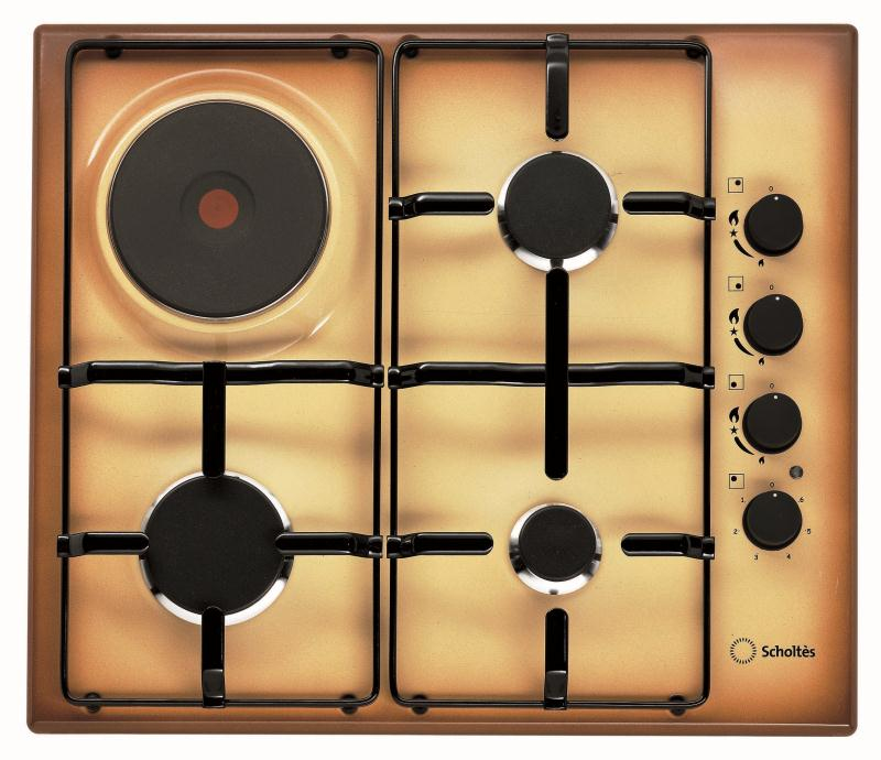 Scholtes TC 63 S TF. Bauform: Eingebaut, Kochfeldtyp: Combi hob, Oberfläche Typ: Emailliert. Kontrolltyp: Rotation, Kontrollposition: Oben rechts