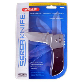 Seber Design Group Drop Point Bead Blast. Länge: 19,7 cm, Gewicht: 196 g. Material Messer: Edelstahl, Stahlsorte: 8Cr15MoV. Handgrifffarbe: Schwarz, Klingenfarbe: Edelstahl
