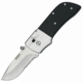 Seber Design Group Drop-point Satin. Länge: 19,7 cm, Gewicht: 196 g. Material Messer: Edelstahl, Stahlsorte: 8Cr15MoV. Handgrifffarbe: Schwarz, Klingenfarbe: Edelstahl