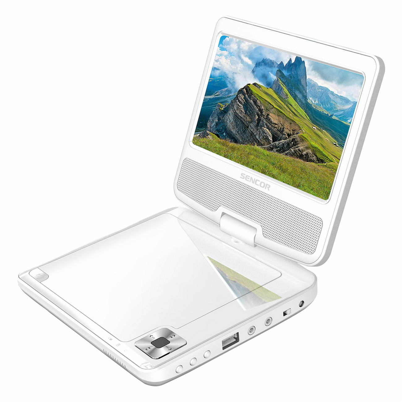 Sencor SPV 2721. Anzeige: LCD, Bildschirmdiagonale: 17,8 cm (7 Zoll). Eingebaute Audio-Decoder: Dolby Digital. Unterstützte Videoformate: DIVX, MPEG4, XVID, Unterstützte Audioformate: MP3, Unterstützte Bildformate: JPG. Breite: 17,5 cm, Tiefe: 16 cm, Höhe: 4 cm. Energiequelle: Batterie/Akku, Batterietechnologie: Lithium-Ion (Li-Ion), Akku-/Batteriebetriebsdauer: 2 h