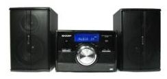 Sharp XL-UR27H. Typ: Home audio micro system, Produktfarbe: Schwarz, Zahl der Disks: 1 Disks. RMS-Leistung: 20 W. Digitales UKW-Radio: 87.5 – 108, AM-Bandbereich: 522 - 1,620 kHz. Lautstärkeregler: Rotation. Gewicht: 2,7 kg, Zentrallautsprecher Gewicht: 600 g, Verpackungsbreite: 520 mm