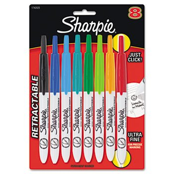 Sharpie Retractable. Schreibfarbe: Schwarz, Blau, Grün, Orange, Rot, Produktfarbe: Mehrfarben