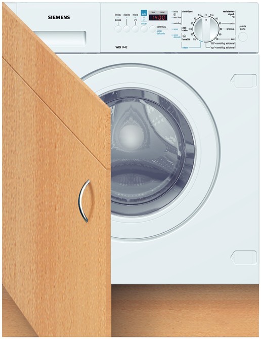 Siemens WDI1442EE. Ladetyp: Frontlader, Bauform: Eingebaut, Produktfarbe: Weiß. Maximale Schleuderdrehzahl: 1400 RPM, Wasch-Kategorie: A, Trocknung Kategorie: B. Kabellänge: 2,2 m. Energie-Effizienzklasse: B. Breite: 595 mm, Tiefe: 584 mm, Höhe: 820 mm