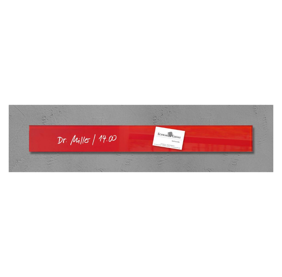 Die moderne rote Glas-Magnetleiste aus der artverum®-Serie im praktischen, schlanken Format 6,5x55 cm sorgt für Organisation mit Stil überall dort, wo wenig Platz ist. Das praktische Board ist edel und gleichzeitig funktional. Außerdem herausragend in Sicherheit und Qualität. Die Oberfläche ist aus hochglänzendem Tempered Glas und die rahmenlose Aufhängung lässt die Glas-Magnetleiste frei vor der Wand schweben. So wird mehrfach international prämiertes Design zum funktionalen Stilobjekt in Ihren Räumen. Als stylische und praktische Magnetleiste im Büro oder zu Hause, in Küche, Flur oder in Nischen - magnetisch und immer wieder neu beschriftbar. Mit extra-starken Magneten haften Visitenkarten, Notizen u. v. m. perfekt am Board. Glas-Magnetboards artverum® setzen Akzente, egal ob als Einzelstück im Hoch- oder Querformat aber auch als Ensemble neben- oder untereinander an der Wand arrangiert. Die Glas-Magnetboards sind nicht nur optisch, sondern auch in puncto Sicherheit ein Highlight. Die TÜV- und GS-geprüfte Produkt-Sicherheit, das hochwertige ESG-Sicherheitsglas (EN 12150-1) und die TÜV-geprüfte Aufhängung sorgen für sicheren Halt an der Wand. 25 Jahre Garantie auf die Glasoberfläche bei Verwendung des Sigel Zubehörs unterstreichen den hohen Qualitätsanspruch von artverum®. Starker SuperDym-Magnet im Cube-Design und Befestigungsmaterial inklusive.