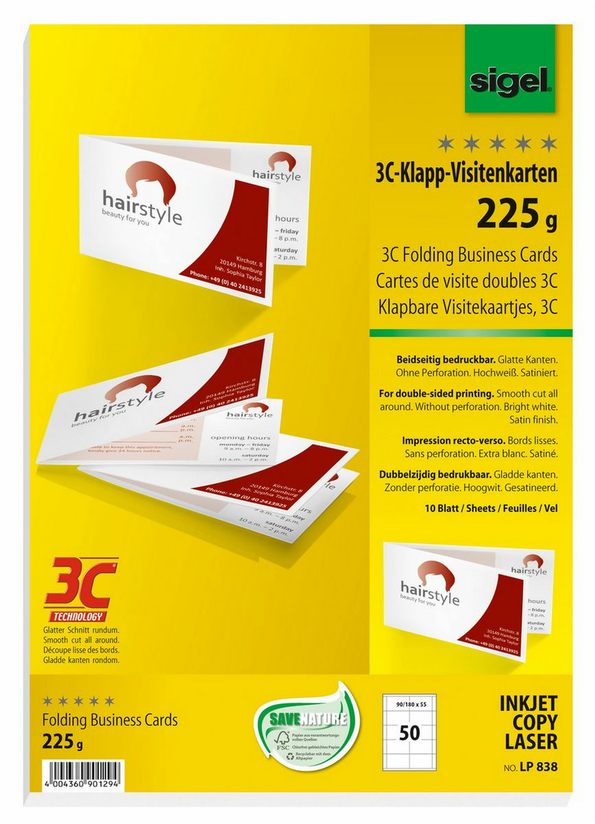 Sigel LP838. Produktfarbe: Weiß, Drucktechnologie: Universal, Ausführung: Satin. Breite: 180 mm, Höhe: 55 mm