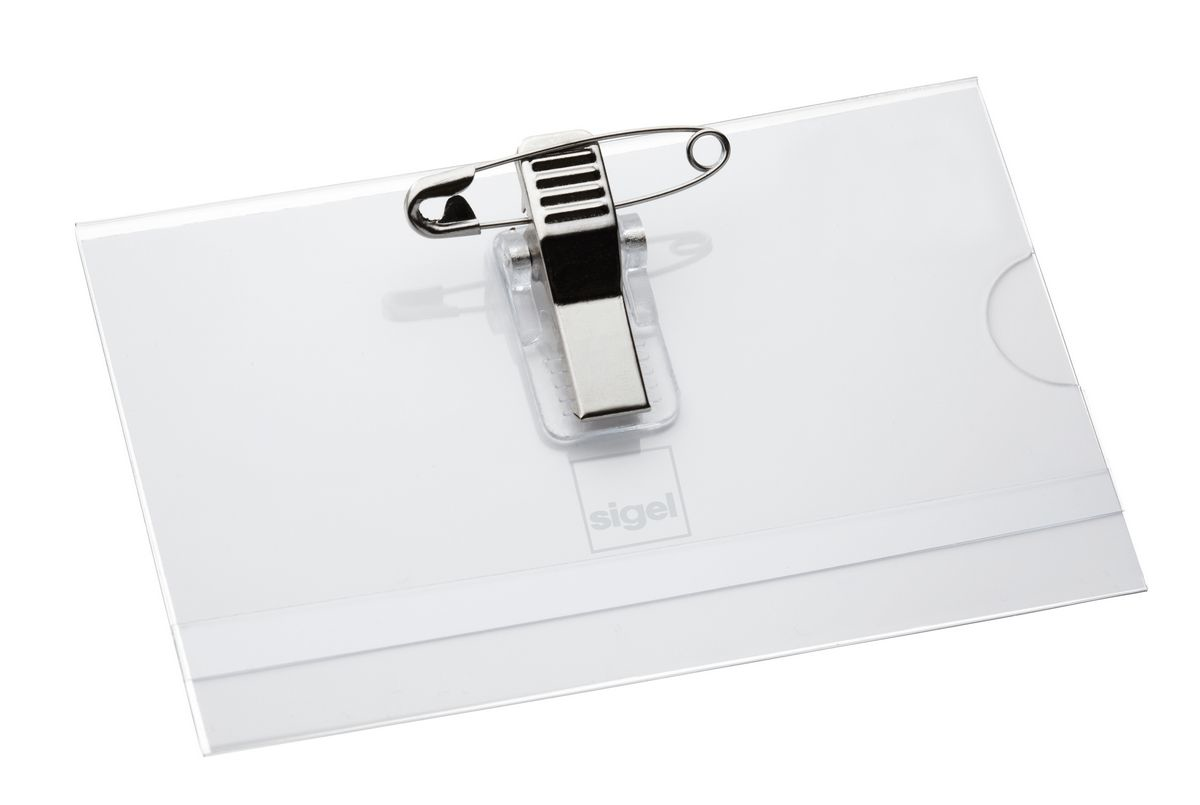 Universell verwendbare, professionelle Namensschilder mit Kombiklemme (Clip und Nadel in einem) aus glasklarer Hartfolie. Mit Daumenstanze auf der Rückseite für einen leichten Austausch der Einlage. Für Schilder bis zu einer Größe von 54x90 mm, Inhalt 50 Stück. Die passenden PC-beschriftbaren Einsteckkarten LP898 sind bei Sigel erhältlich.
