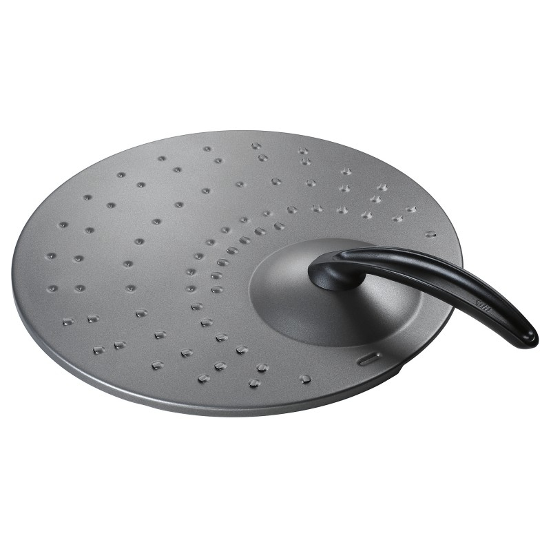 Antihaftbeschichtet Für knuspriges Braten ohne Fettspritzer. Für alle handelsüblichen Pfannen bis Ø 32 cm. Mit Dampföffnungen. Leichte Reinigung. Wärmeisolierender Kunststoffgriff. Ergonomisch und sicher.