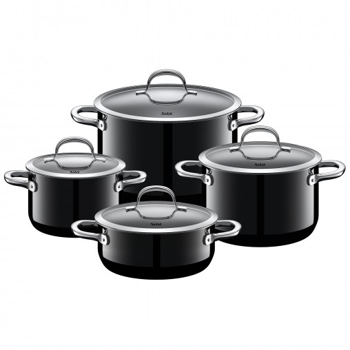 Topf-Sets aus Silargan besitzen eine dunkle Innenseite. Die dunklen Oberflächen leiten und speichern die Hitze nachweislich besser als helle Oberflächen. Röststoffe entwickeln sich vollaromatisch und das Bratgut erhält eine besonders schöne Bräunung.