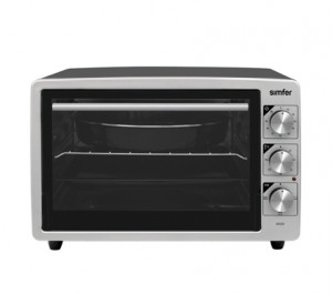 Simfer M 3228. Ofengröße: Klein, Ofentyp: Electric oven, Gesamtes Fassungsvermögen Garraum Ofen: 32 l. Produktfarbe: Edelstahl, Kontrolltyp: Rotation, Kontrollposition: Vorderseite. Timer-Typ: Mechanisch, 99-Minuten-Timer: 90 min. Gewicht: 8 kg