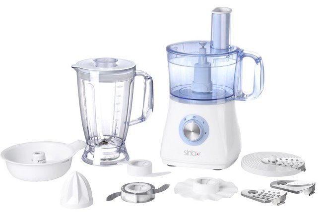 Sinbo SHB-3070. Produktfarbe: Weiß, Kontrolltyp: Rotation. Schüsselmaterial: Kunststoff, Material Behälter: PP, Material Messer: Edelstahl. Schalen enthalten: Häcksler, Teig, Mixen