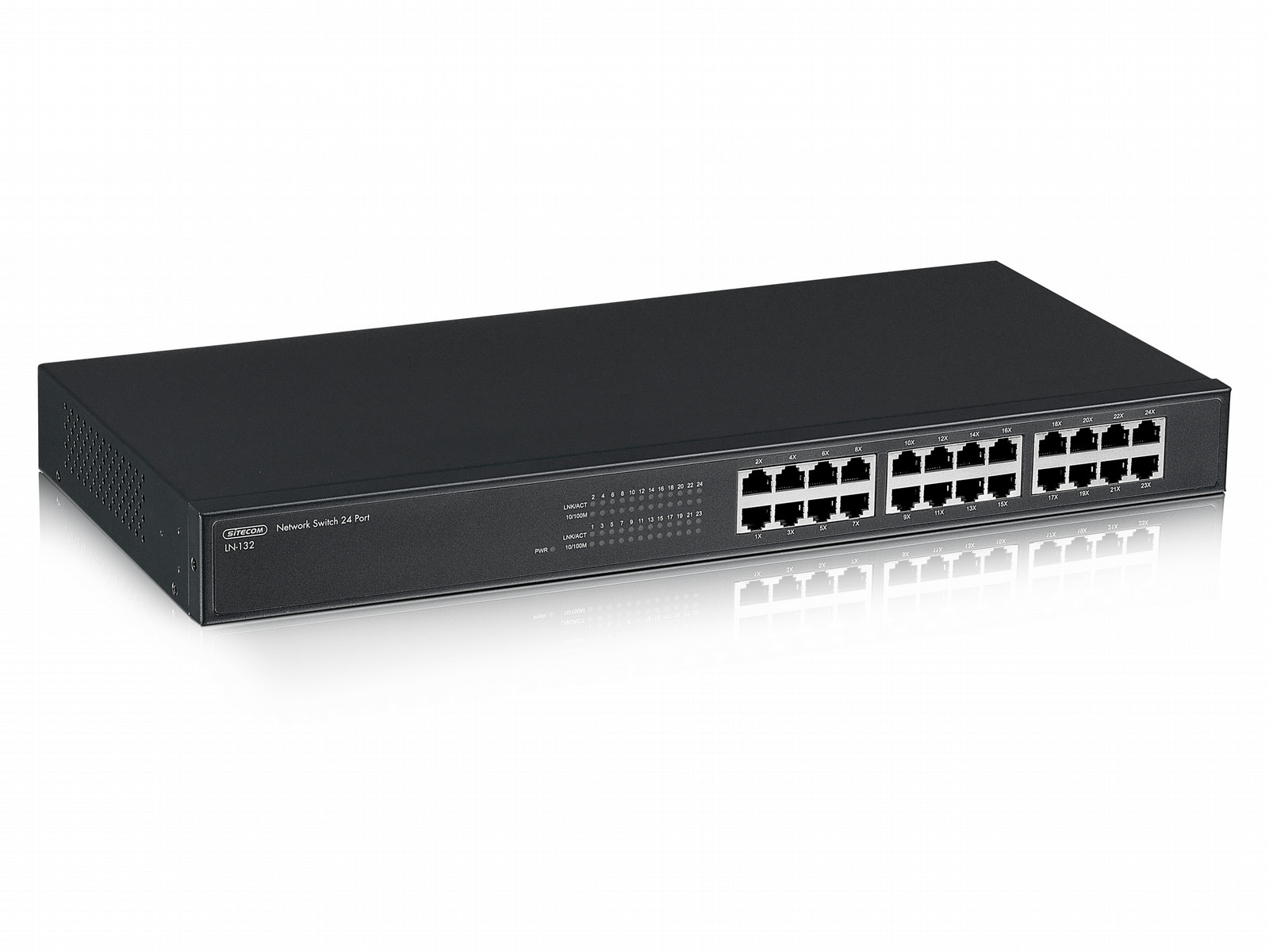 Der 19” Network Switch 24 Ports ermöglicht den Anschluss von 24 Office-Benutzern oder Geräten an das Netzwerk für den ungehinderten gemeinsamen Zugriff auf Dateien und Peripheriegeräte. Er bietet 24 Anschlüsse mit einer garantierten Übertragungsgeschwindigkeit von bis zu 10/100 Mbps und bis zu 1,25M Bit Puffer. Dank des integrierten Netzteils ist kein zusätzlicher Adapter erforderlich.