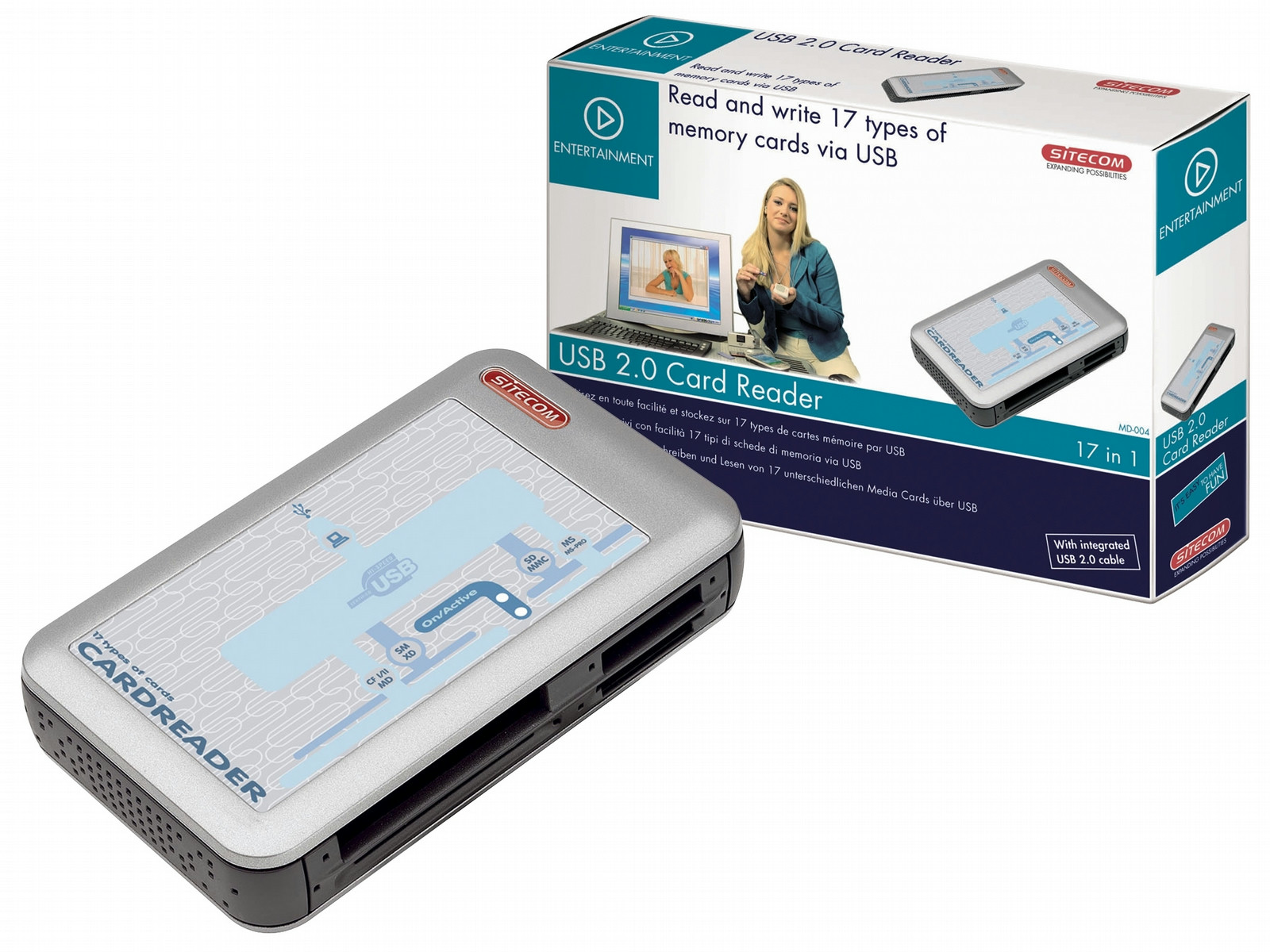 Der MD-004 liest folgende 51 verschiedenen Speicherkartentypen: Smart Media Card (SM), Memory Stick (MS), Memory Stick Pro (MS Pro), Memory Stick Duo (MS Duo), Memory Stick Pro Duo, Memory Stick Magic Gate, Memory Stick Magic Gate Duo, Memory Stick select function, Secure Digital Card (SD), MultiMedia Card (MMC), Compact Flash (CF I, II), SM RAM Card, Micro Drive (MD), Mini SD Card, RS-MMC und XD-Card.