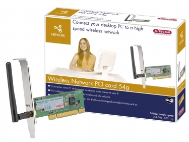 Sitecom Wireless Network PCI Card 54g. Übertragungstechnik: Kabellos, Hostschnittstelle: PCI. Datenübertragungsrate (Maximum): 54 Mbit/s, Bandbreite: 2,4 GHz. Kompatibilität: PC