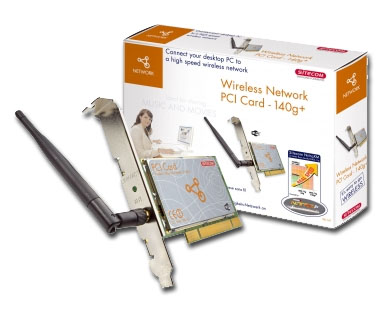 Sitecom WL-141 Wireless Network PCI Card 140g+. Übertragungstechnik: Kabellos, Hostschnittstelle: PCI. Datenübertragungsrate (Maximum): 140 Mbit/s, Bandbreite: 2,4 GHz. Data Link Protokolle: 802.11g+