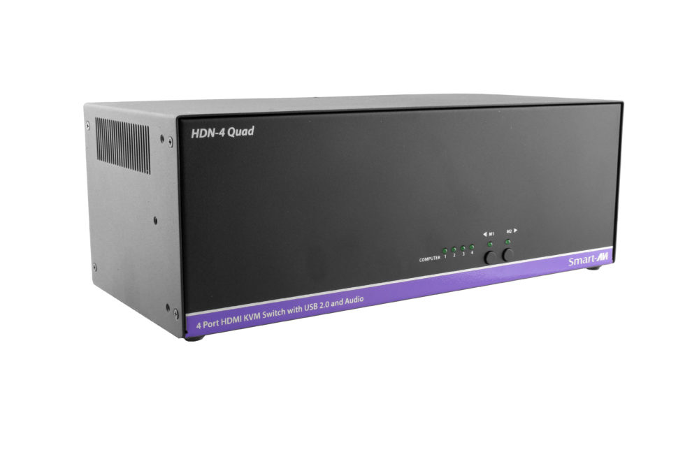 Smart-AVI HDN-4QUAD. Tastatur Porttyp: USB, Maus Porttyp: USB, Video Porttyp: HDMI. Maximale Auflösung: 3840 x 2160 Pixel. Produktfarbe: Schwarz. Bandbreite: 0,165 GHz, Maximaler Betriebsabstand: 24 m, Maximum Kabellänge: 12 m. AC Eingangsspannung: 100-240 V, Ausgangsspannung: 5 V, Outputstrom: 4 A