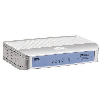 SMC ADSL2/2+ Barricade Router. xDSL Anschluss: ADSL, Aufwärts gerichtete Datenrate: 2 Mbit/s, Abwärts gerichtete Datenrate: 24 Mbit/s. Netzstandard: IEEE 802.1d,IEEE 802.3,IEEE 802.3u. Management-Protokolle: TFTP, SNMP v1/2c, SNTP. Firewall: NAT, SPI, DoS, Filtern: URL, VPN Unterstützung: VPN pass-through (IPSec-ESP Tunnel mode, L2TP, PPTP). Gewicht: 180 g