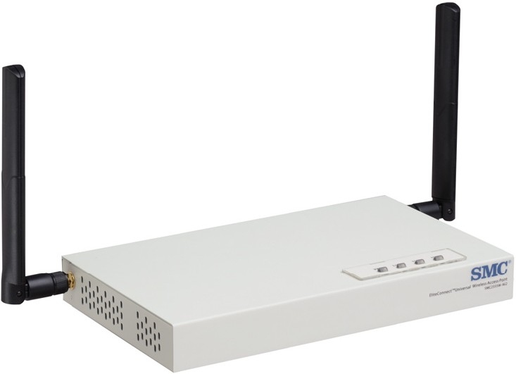 SMC EliteConnect Universal Wireless Access Point. Datenübertragungsrate (Maximum): 108 Mbit/s, Bandbreite: 2,4 GHz, Zahl der Benutzer: 64 Benutzer. Management-Protokolle: SSH, SNMP (1, 2c, 3), Medien-Zugang Protokoll: CSMA/CA. Verkabelungstechnologie: 10Base-T, 100Base-TX. Unterstützte Sicherheitsalgorithmen: 152-bit WEP,WPA,WPA2. Stromverbrauch (typisch): 13,2 W, Energiebedarf: 100-240V; 50/60V