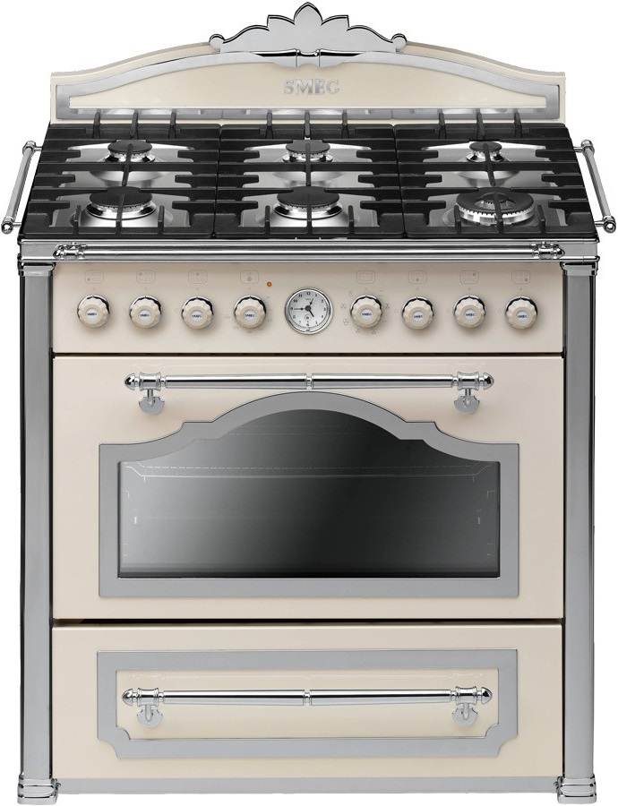 Gaskochfeld/Elektro-Backofen, Backofenvolumen 80L, Energieeffizienzklasse A, 90cm, Creme/Edelstahl