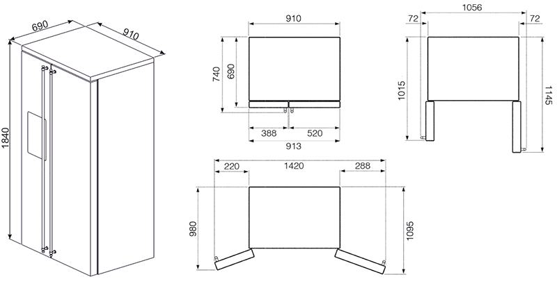 | Tiefe bei geöffneter Tür | 1145 mm |