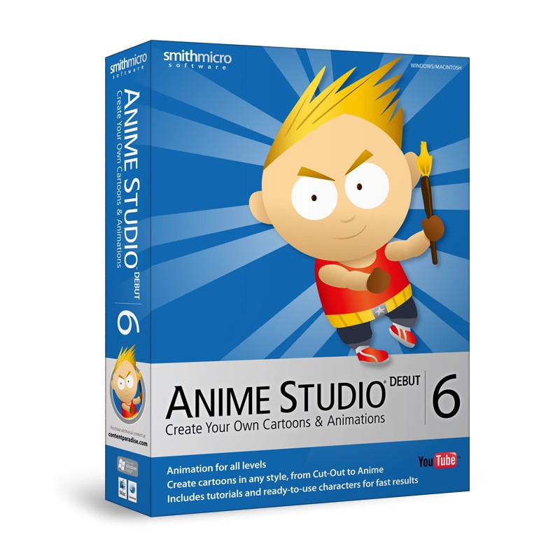 Smith Micro Anime Studio 6 Debut Win/Mac, EN. Plattform: PC, Mac, Min. benötigter Festplattenplatz: 250 MB, Min. benötigter RAM: 256 MB. Unterstützte Sprachen: Englisch