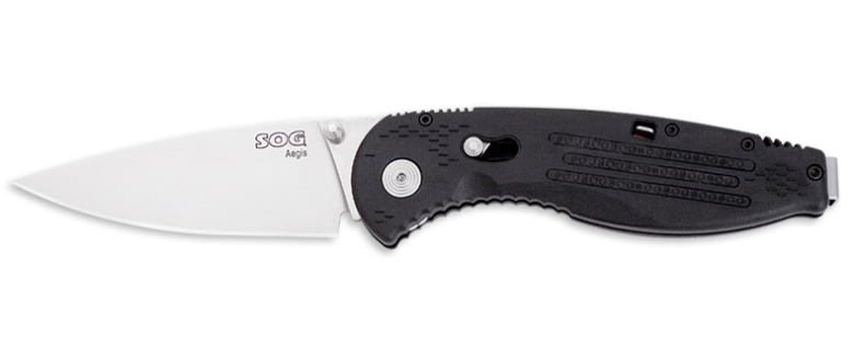 SOG AE01. Gewicht: 87,88 g, Länge: 21 cm. Stahlsorte: AUS 8, Materiallgriff: Nylon. Handgrifffarbe: Schwarz