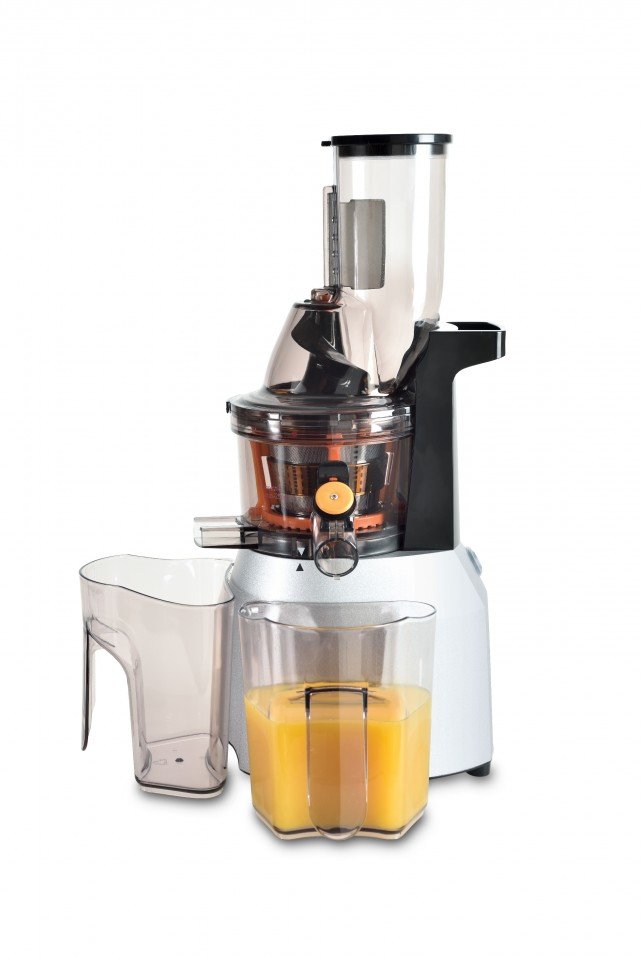 - Inkl. 2 Auffangbehälter für Trester und Saft sowie 3 verschiedene Filtereinsätze (für Säfte, Smoothies und gefrorene Früchte) und Reinigungsbürste