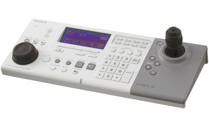 Ein optionaler RM-NS1000-Systemcontroller, der an die NSR-1000-Serie oder über ein USB-Kabel an einen Client-PC angeschlossen werden kann und dem Anwender erlaubt, mehrere Server und Kameras zu steuern. Von dieser Einheit aus können zahlreiche Funktionen ausgeführt werden, unter anderem Schwenken/Neigen/Zoomen in Voreinstellung, Snapshots, Export von Videos und sogar Ereignissuche und -wiedergabe.