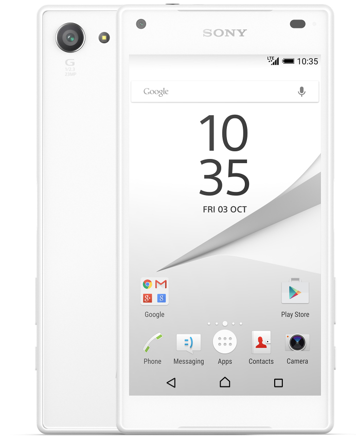 Z5 Compact - 4.6" 1280 x 720p TFT, GSM/UMTS/LTE, 2 GHz/1.5 GHz Qualcomm MSM8994 Snapdragon 810 Octa Core 64-bit, 2 GB RAM, microSD, 23 MP, IP 68, Bluetooth, Wi-Fi, Android 5.1 (Lollipop)