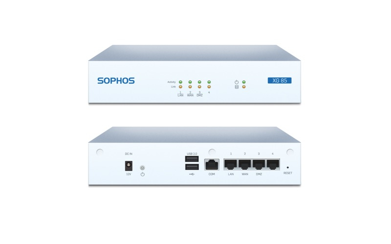 Sophos XG 85W. Verkabelungstechnologie: 10/100/1000Base-T(X). WAN Port: Ethernet (RJ-45). Netzstandard: IEEE 802.11a, IEEE 802.11b, IEEE 802.11g, IEEE 802.11n, Frequenzbereich: 2,4 - 5 GHz. Antennentyp: Intern. Produktfarbe: Weiß