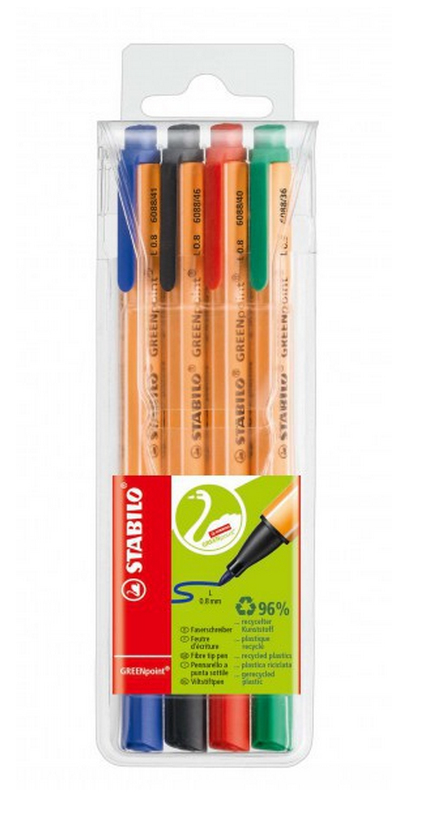 Der STABILO GREENpoint ist gedacht für Alle, die an die Umwelt denken. 96% des GREENpoints werden wiederverwertet. Das bedeutet: Natürliche Ressourcen wie Wasser und Energie werden geschont und Müllberge kleiner.