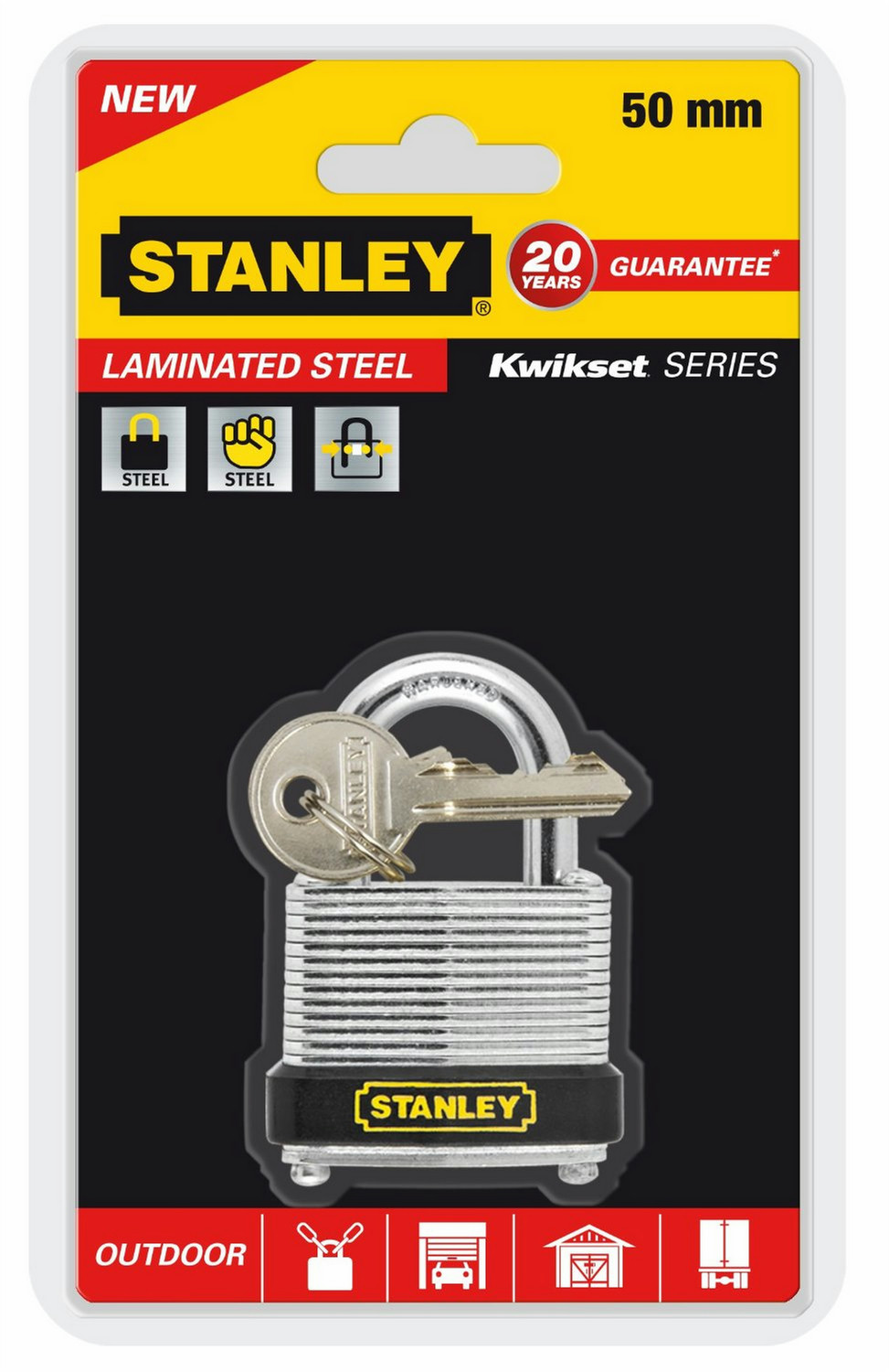 - Geeignet für den Aussenbereich - Gehärteter Stahlbügel mit Doppelverriegelung - Dualer Sicherungsmechanismus Federn und Kugelumlauf - Anti-Pick-Pin aus Messing - 2 Schlüssel inklusive