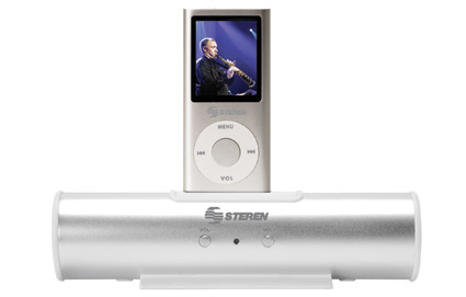 Steren BOC-1170. Frequenzbereich: 150 - 18000 Hz. Kopfhörer-Konnektivität: 3,5 mm. Apple-Docking-Kompatibilität: iPod. Produktfarbe: Silber. Energiequelle: Batterie/Akku, Gleichstrom, Akku-/Batterietyp: AAA, AC Eingangsspannung: 100 - 240 V