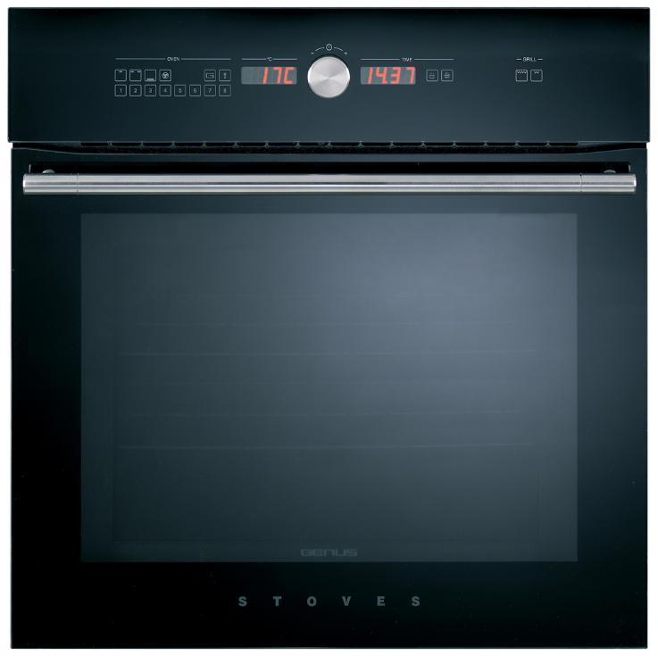 Stoves Genus 600. Ofentyp: Electric oven, Gesamtes Fassungsvermögen Garraum Ofen: 69 l. Produktfarbe: Schwarz, Kontrolltyp: Knöpfe. Timer-Typ: Digital. Leistung: 7360 W. Breite: 595 mm, Tiefe: 550 mm, Höhe: 725 mm