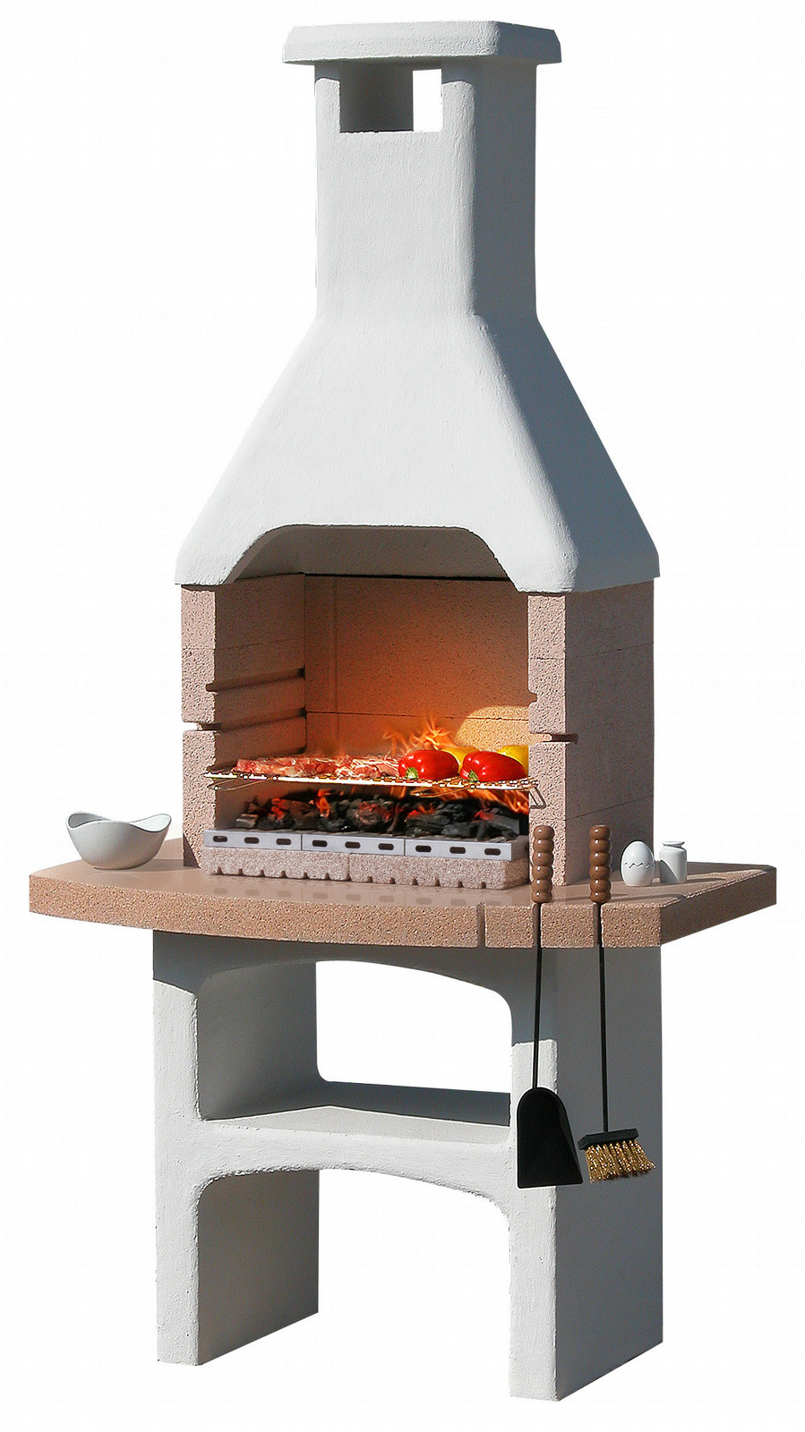 Sunday Desert. Typ: Grill, Wärmequelle: Dunkelgrau, Zertifizierung: EN1860-1. Formfaktor: Kamin, Oberfläche Typ: Gitter, Produktfarbe: Weiß. Breite: 1140 mm, Tiefe: 710 mm, Höhe: 2250 mm. Grillzubehör enthalten: Bürste