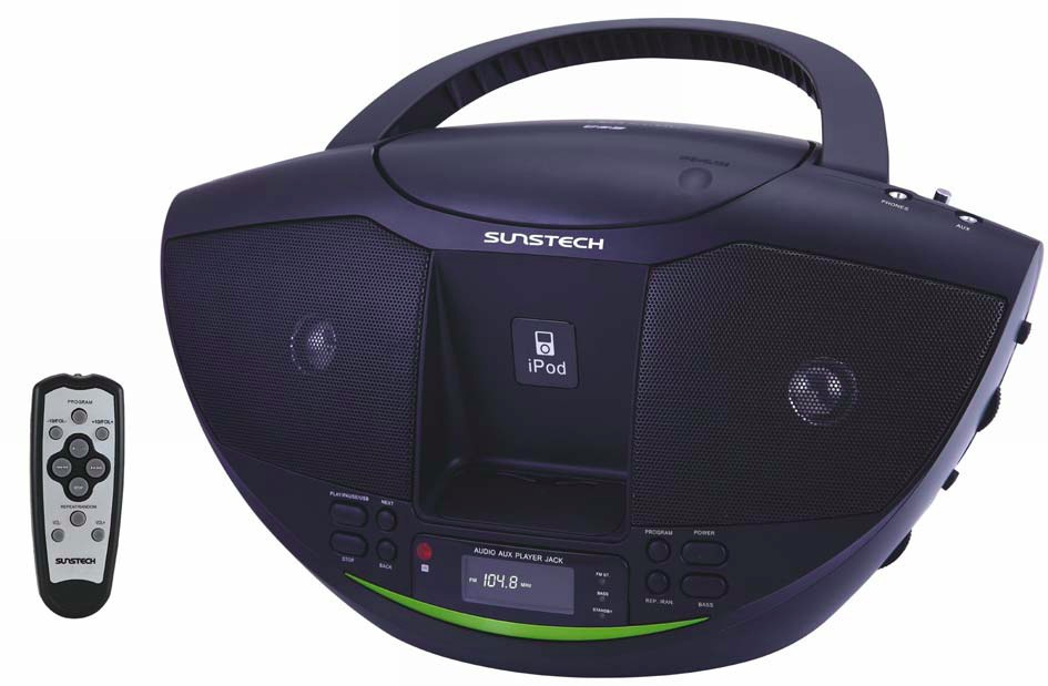 Sunstech CRUM378i. Tunertyp: Analog, Unterstützte Bänder: AM, FM. Optisches Laufwerk - Typ: Spieler, Unterstützte Medien: CD-R, CD-RW, Wiedergabemodus: Wiederholung. Display-Typ: LCD. Energiequelle: AC