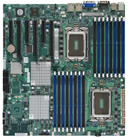 Supermicro H8DGi. Motherboardformfaktor: Erweitertes ATX. Prozessorhersteller: AMD, Prozessorsockel: Buchse G34, Anzahl der unterstützten Prozessorkerne: 4, 8, 12, 16. Unterstützte Arbeitsspeicher: DDR3-SDRAM, Unterstützte Arbeitsspeichergeschwindigkeit: 1066,1333,1600 MHz, RAM-Speicher maximal: 512 GB. Festplatten-Schnittstelle: Serial ATA II, RAID Level: 0, 1, 10. Motherboard Chipsatz: AMD SR5690, Motherboard-Southbridge: AMD SP5100