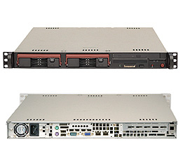 Supermicro SuperServer 6016T-T. Motherboard Chipsatz: Intel 5500, Prozessorsockel: Socket B (LGA 1366). RAM-Speicher maximal: 24 GB. RAID Level: 0, 1, 5, 10. LAN-Controller: Intel 82574L, Netzwerkfunktionen: Gigabit Ethernet. BIOS-Typ: AMI, BIOS-Speichergröße: 32 MB