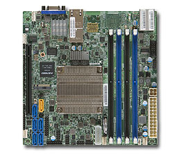 Supermicro X10SDV-4C-TLN2F. Komponente für: Server, Motherboardformfaktor: mini ITX. Prozessorhersteller: Intel, Verlustleistung (TDP): 45 W. Unterstützte Arbeitsspeicher: DDR4-SDRAM, Unterstützte Arbeitsspeichergeschwindigkeit: 1600,1866,2133 MHz, RAM-Speicher maximal: 128 GB. Festplatten-Schnittstelle: Serial ATA III. Ethernet Schnittstellen Typ: 10 Gigabit Ethernet, Gigabit Ethernet