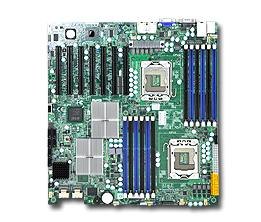 Supermicro X8DTH-IF. Motherboardformfaktor: Erweitertes ATX. Prozessorhersteller: Intel, Prozessorsockel: Socket B (LGA 1366), Anzahl der unterstützten Prozessorkerne: 2, 4, 6. Unterstützte Arbeitsspeicher: DDR3-SDRAM, Unterstützte Arbeitsspeichergeschwindigkeit: 800,1066,1333 MHz, RAM-Speicher maximal: 192 GB. Festplatten-Schnittstelle: SATA, RAID Level: 0, 1, 5, 10. Motherboard Chipsatz: Intel 5520