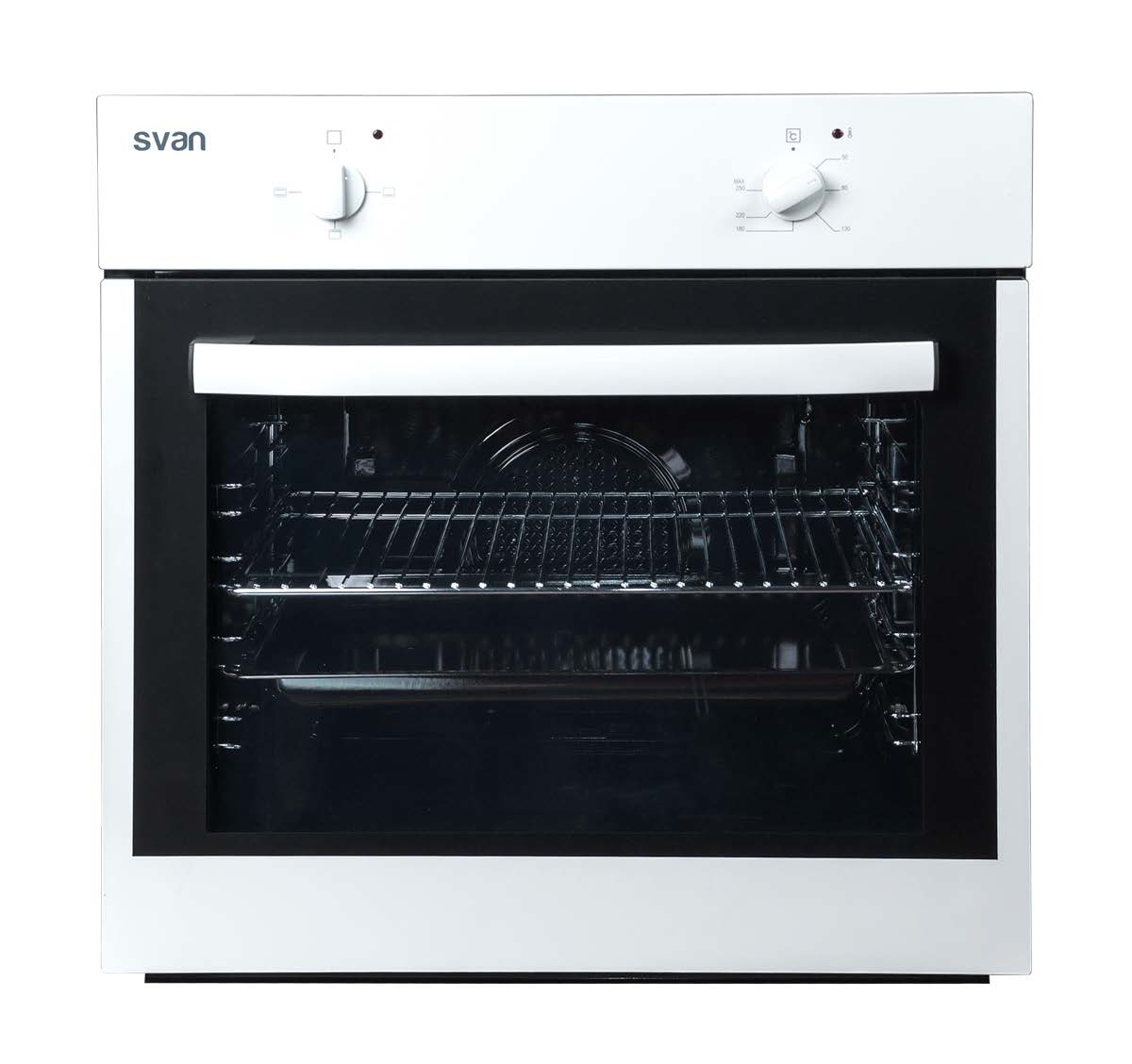 SVAN SVH095B. Ofengröße: Medium, Ofentyp: Electric oven, Gesamtes Fassungsvermögen Garraum Ofen: 56 l. Produktfarbe: Schwarz, Weiß, Kontrolltyp: Rotation, Kontrollposition: Vorderseite. Energie-Effizienzklasse: A. Breite: 595 mm, Tiefe: 570 mm, Höhe: 595 mm