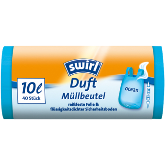 Welcher Müllbeutel erinnert schon an die Weite des Meeres? Wir haben ihn kreiert. Kühl, frisch und maritim – so halten unsere Swirl® Duft Müllbeutel Ocean nicht nur sauber, sondern machen auch noch gute Laune! Wählen Sie zwischen der 5 und 10 Liter-Größe.