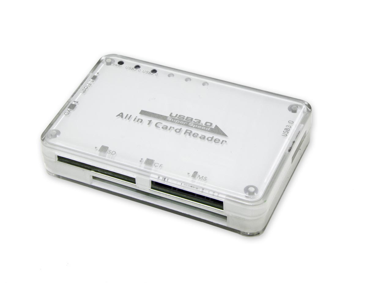 SYBA SY-CRD20094. Kompatible Speicherkarten: CF, CF+, Speicherstick (MS), miniSD, MMC, MS Duo, MS PRO, MS PRO Duo, MS Pro-HG Duo, MSXC, SD, SDHC,. Schnittstelle: USB 3.0. Produktfarbe: Weiß. Mitgelieferte Kabel: USB. Abmessungen (BxTxH): 70 x 44 x 13 mm