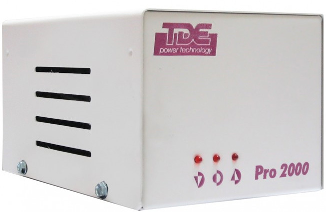 TDE Pro 2000. Ausgangskapazität: 2000 VA, Input Betriebsspannung (min): 95 V, Input Betriebsspannung (max): 145 V. AC-Steckertypen: NEMA 5–15R. Formfaktor: Kompakt, Produktfarbe: Weiß. Breite: 102 mm, Tiefe: 160 mm, Höhe: 86 mm