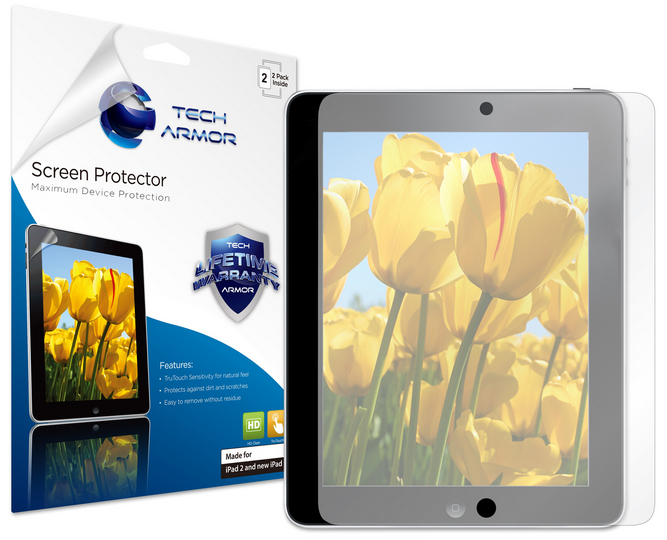 Tech Armor SP-AGF-APL-ID-2. Gerätetyp: Tablet, Markenkompatibilität: Apple, Kompatibilität: iPad 2/3/4. Menge pro Packung: 2 Stück(e)
